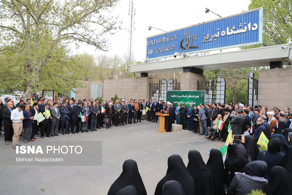 امروز دوشنبه، ۲۵ فروردین، اساتید، دانشجویان و کارکنان دانشگاه تبریز، در مقابل محوطه درب اصلی دانشگاه و در حمایت از مردم مظلوم غزه و محکومیت جنایتهای رژیم صهیونیستی تجمع کردند.