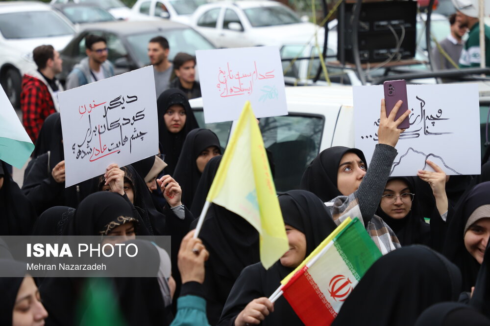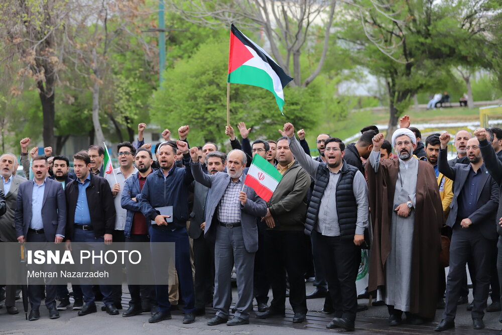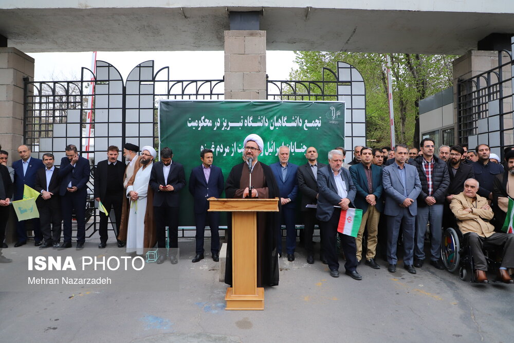 امروز دوشنبه، ۲۵ فروردین، اساتید، دانشجویان و کارکنان دانشگاه تبریز، در مقابل محوطه درب اصلی دانشگاه و در حمایت از مردم مظلوم غزه و محکومیت جنایتهای رژیم صهیونیستی تجمع کردند.