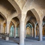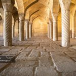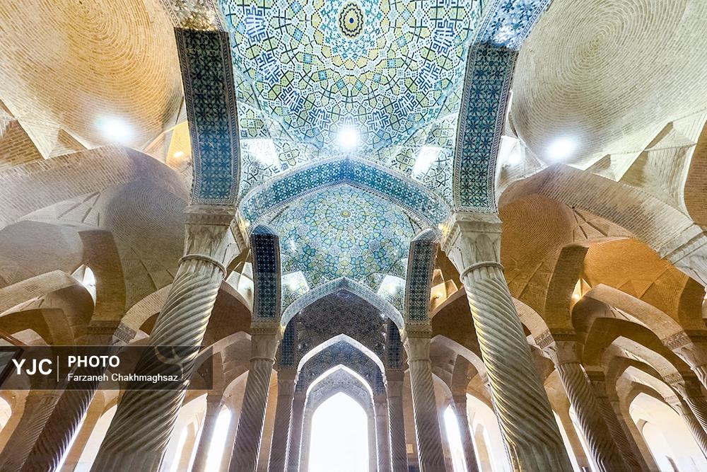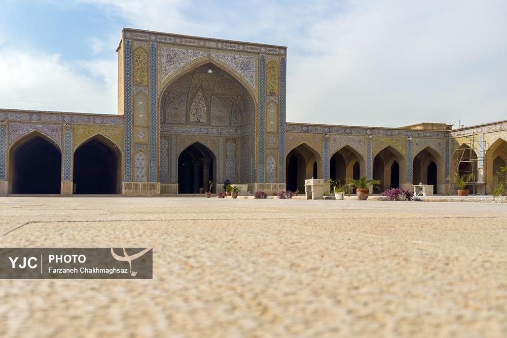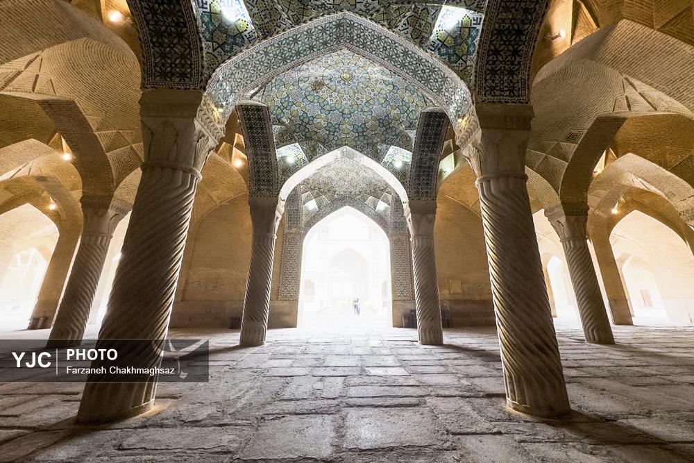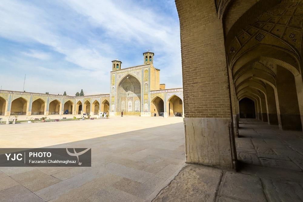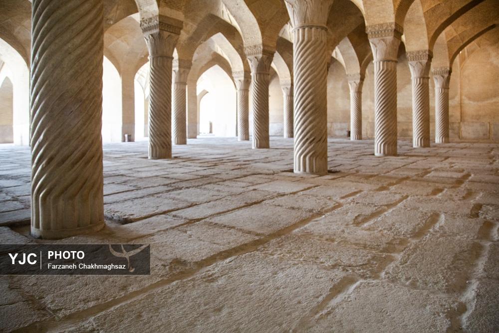مسجد وکیل که در دوران زندیه و به دستور کریم خان زند ساخته شده است در ضلع غربی بازار وکیل واقع شده است و مساحتی نزدیک به ۱۱ هزار متر مربع دارد که دارای دو شبستان جنوبی و شرقی است در شبستان جنوبی تعداد ۴۸ ستون سنگی یکپارچه و مارپیج وجود دارد.
