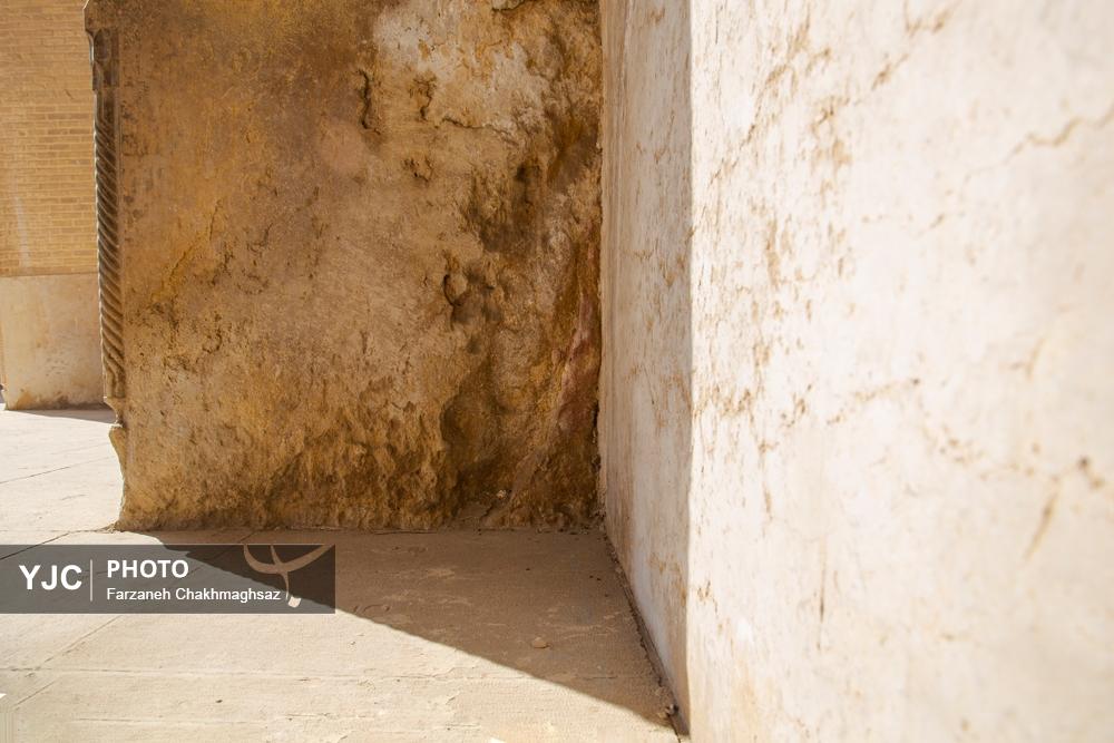 دیوارهای بلندی که حائل بین فضای مسجد و گذر مجاور بازار وکیل جنوبی است، در برخی بخشها بر اثر نم، تغییر رنگ داده و به شکل آشکاری در بعضی قسمتها هم شکم داده است.