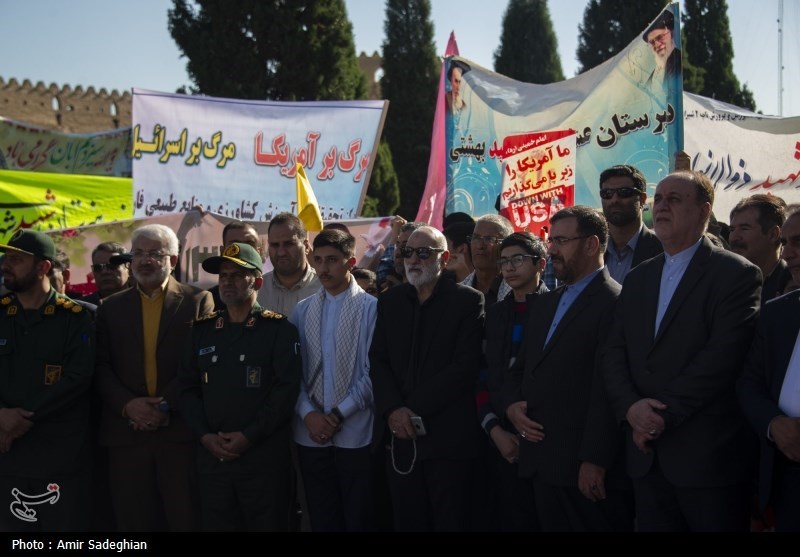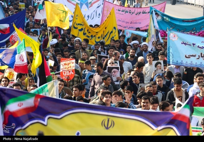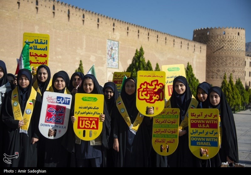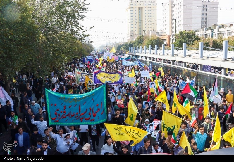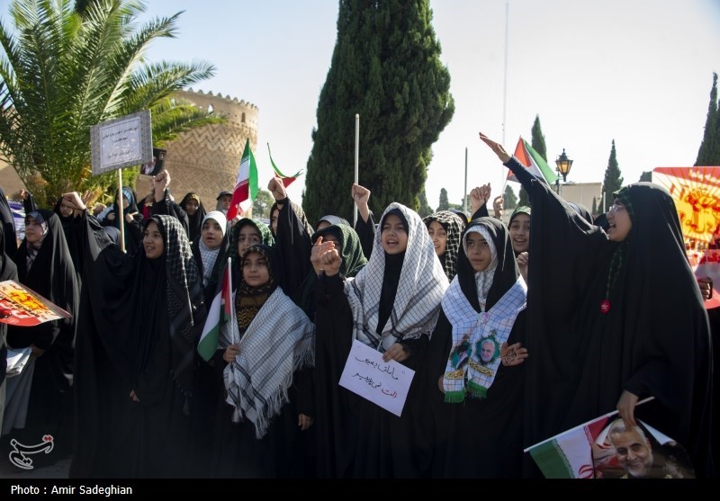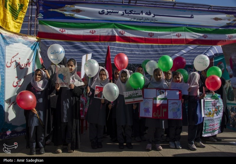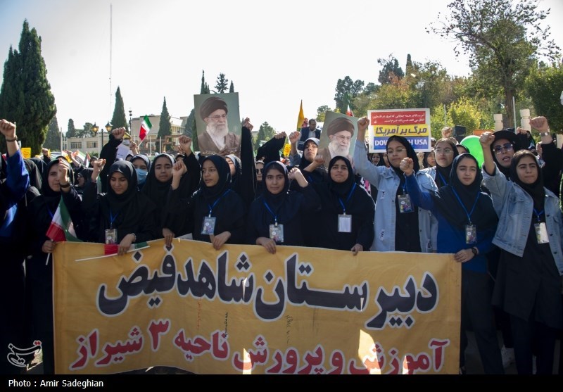راهپیمایی ۱۳ آبان در مشهد و شیراز، مراسم راهپیمایی ۱۳ آبان، روز مبارزه با استکبار جهانی سالروز تسخیر لانه جاسوسی توسط دانشجویان پیرو خط امام و روز دانشآموز با شعار محوری «آمریکا، محور شرارتهای جهان» امسال با هدف حمایت از مردم مظلوم فلسطین، غزه و لبنان در شیراز و مشهد همزمان با سراسر کشور برگزار شد.