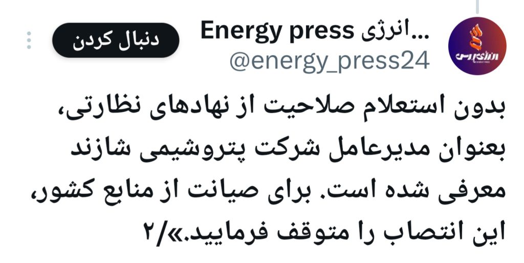 انرژی نیوز دیگر رسانه حوزه انرژی نیز به مانند دیگر رسانه‌ها که متعجب و منتقد از این انتصاب بودند، در توییتی به این انتصاب واکنش نشان داد و ضمن بررسی ابعاد مختلف این انتصاب که واکنش‌های تند دیگر رسانه‌ها را نیز به همراه داشت، نوشت: