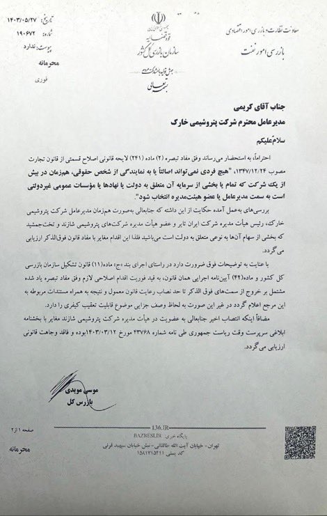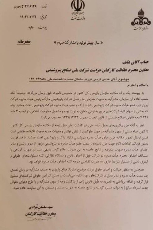 به گزارش  شهر مردم به نقل از نفیرنفت: همزمان با خبر انتصاب عباس کریمی به عنوان مدیرعامل شرکت پتروشیمی شازند، موجی از انتقادات به این انتصاب، با انتشار نامه‌های سازمان‌های نظارتی در خصوص ایشان همراه شد.