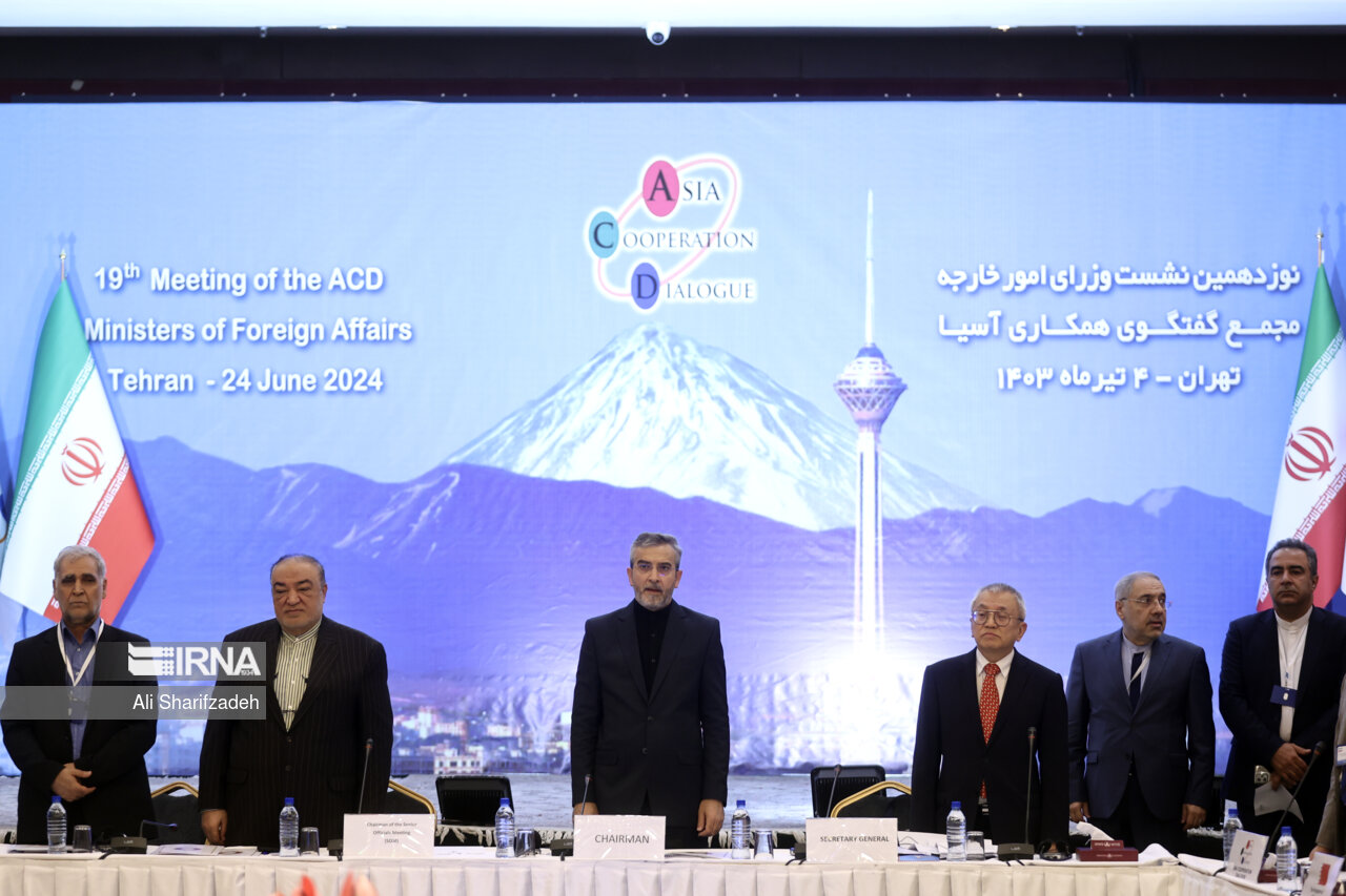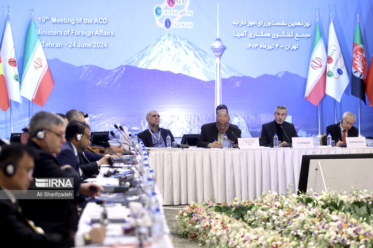 نشست وزرای خارجه مجمع گفتوگوهای همکاری آسیا، نوزدهمین نشست وزرای امور خارجه مجمع گفتوگوهای همکاری آسیا (ACD) صبح دوشنبه (۴ تیر ۱۴۰۳) با حضور مقامات داخلی و خارجی در هتل پارسیان آزادی برگزار شد.