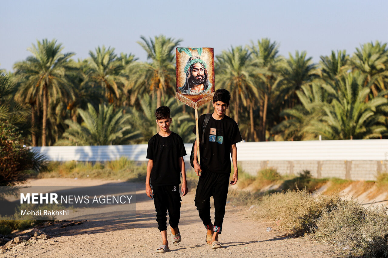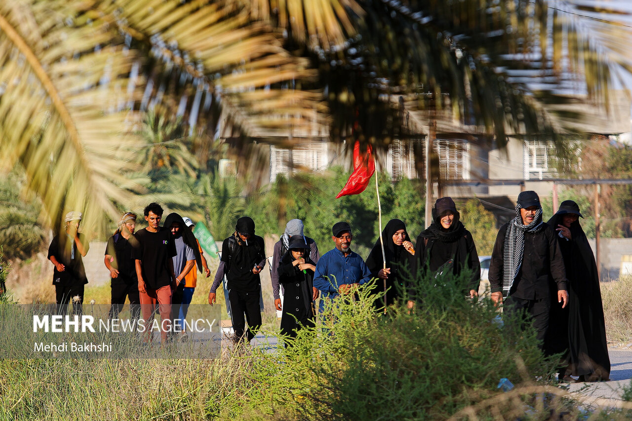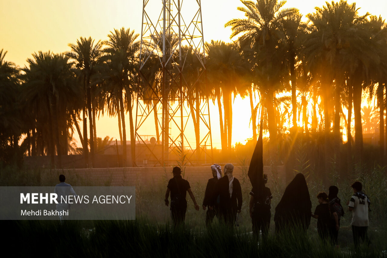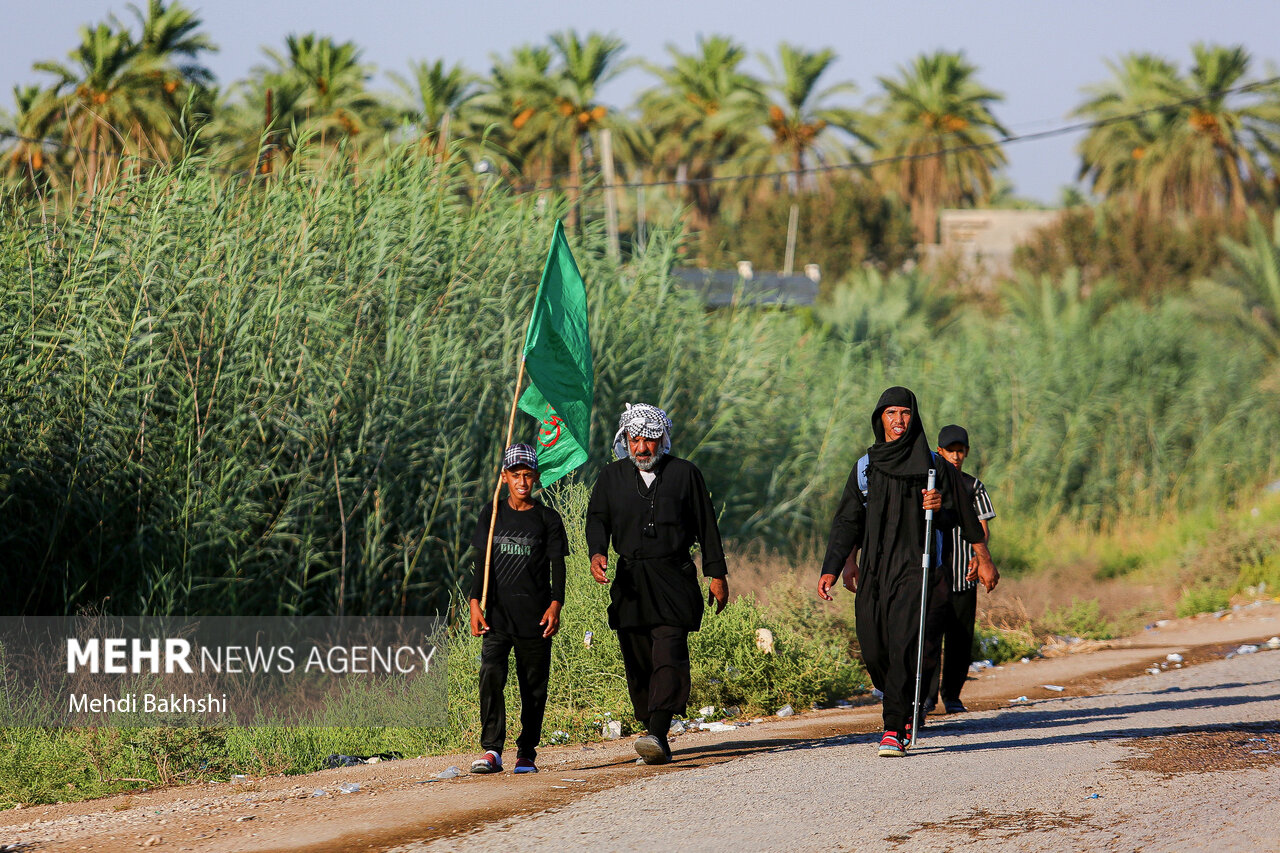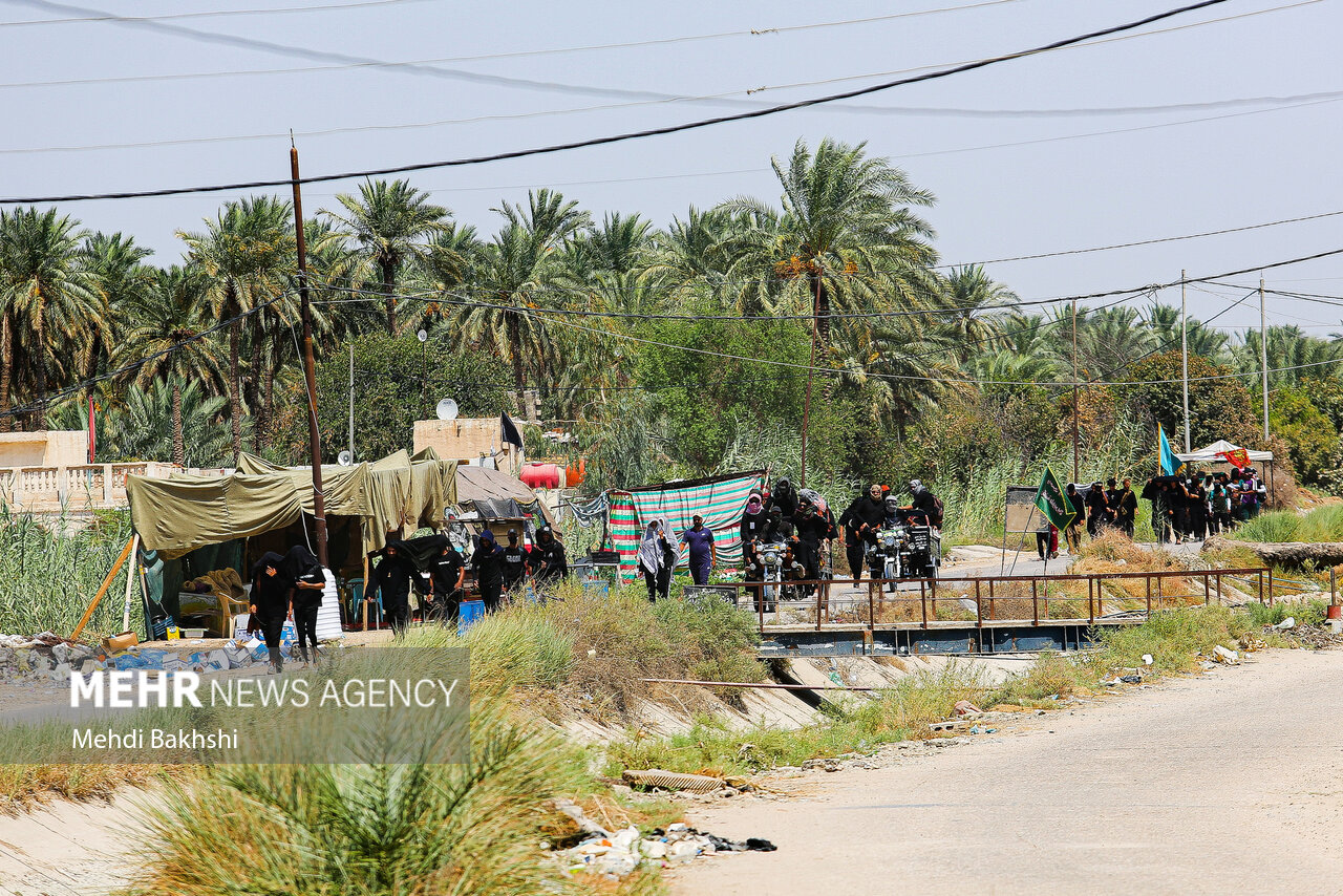 این مسیر از کنار نخلستان عبور می‌کند و اهالی منطقه نیز با برپایی موکب هایی در سراسر این مسیر از زائران پذیرایی می‌کنند.