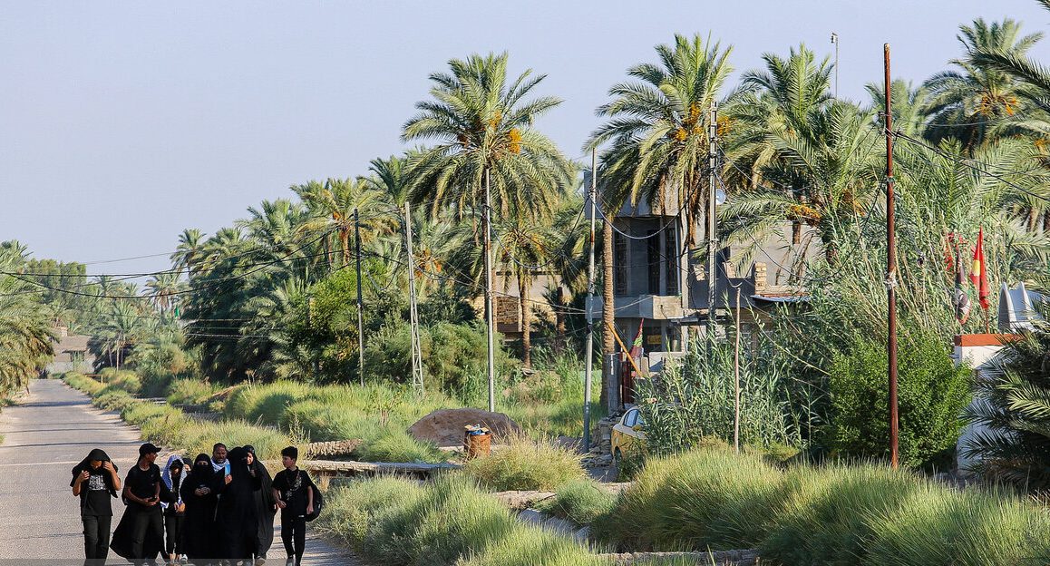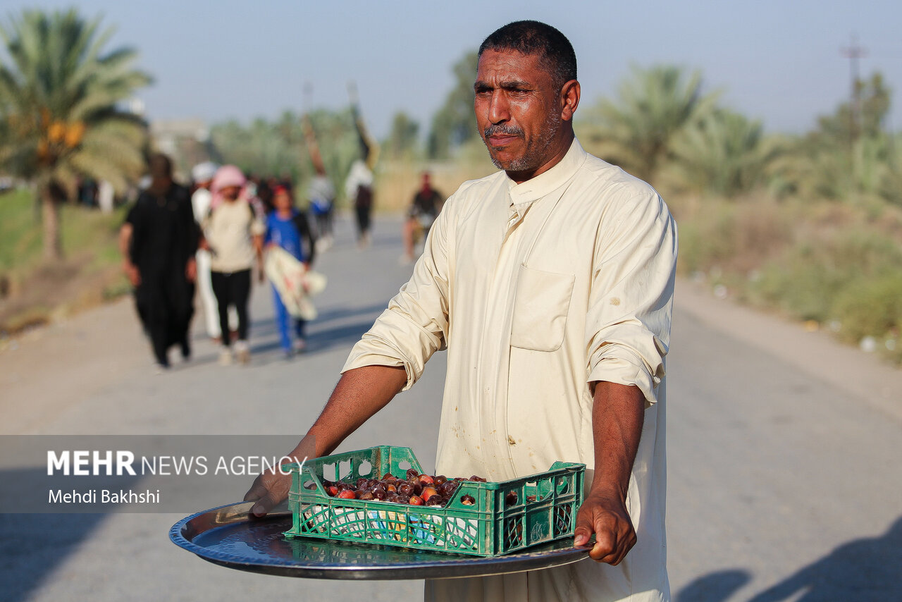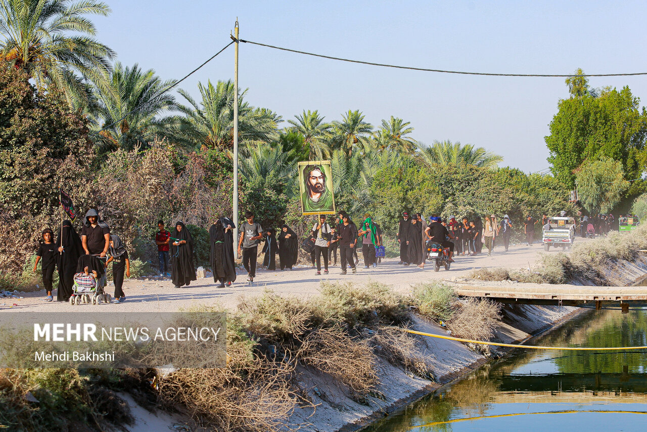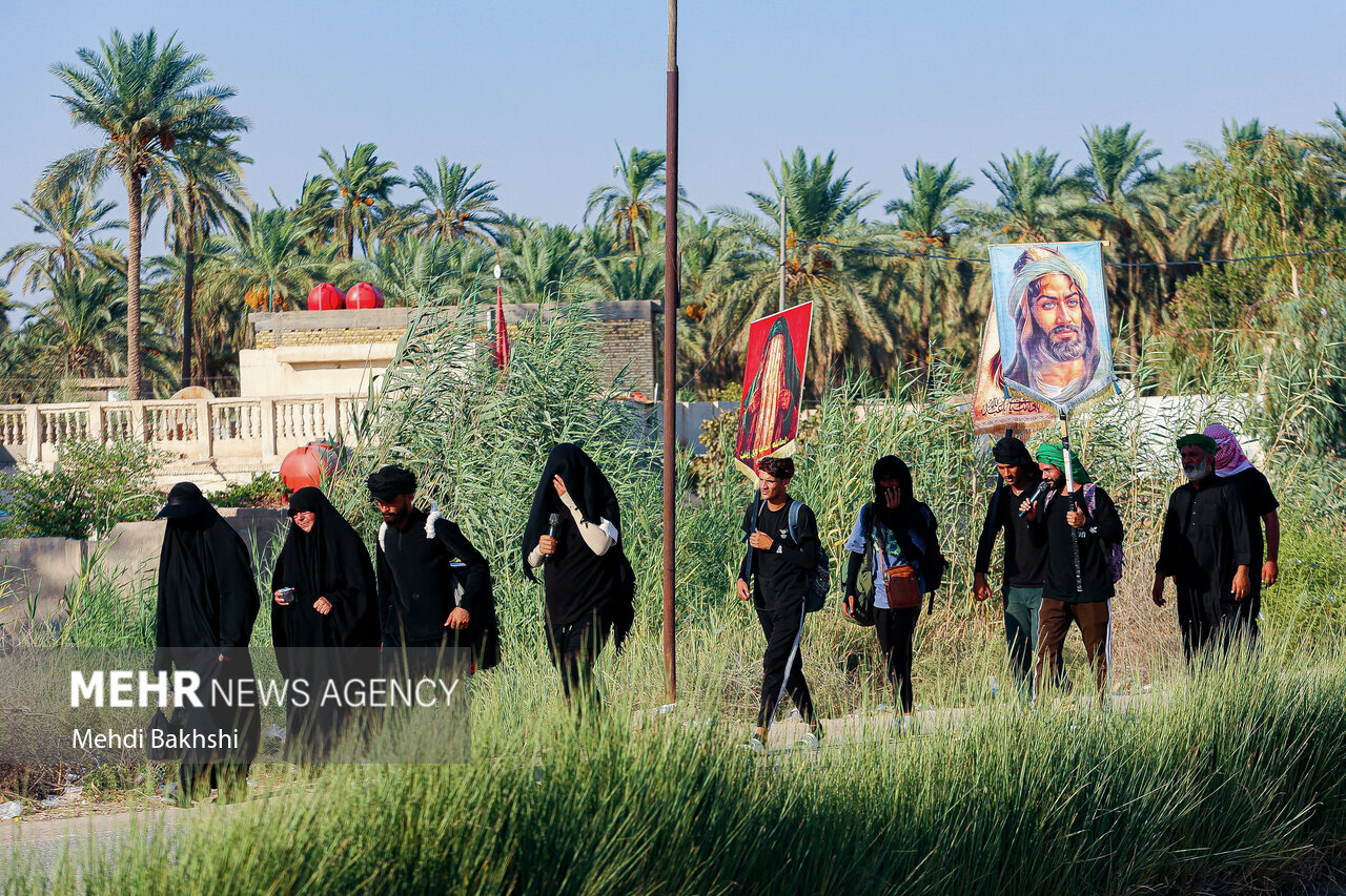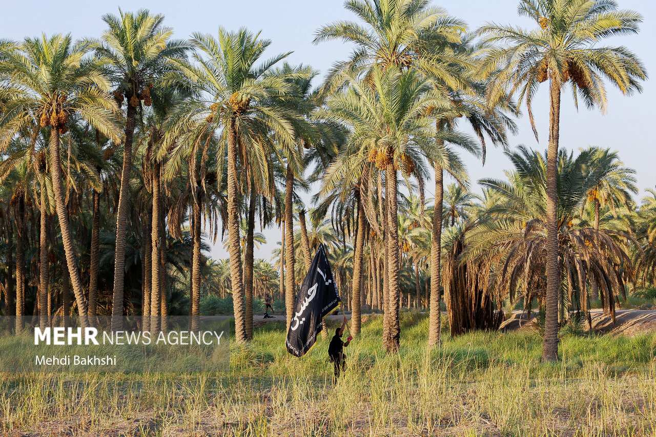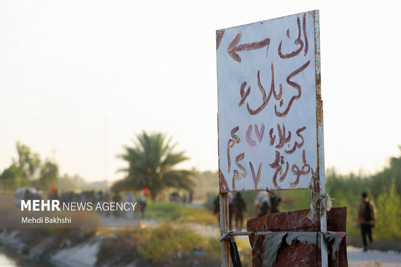 این مسیر از کنار نخلستان عبور می‌کند و اهالی منطقه نیز با برپایی موکب هایی در سراسر این مسیر از زائران پذیرایی می‌کنند.