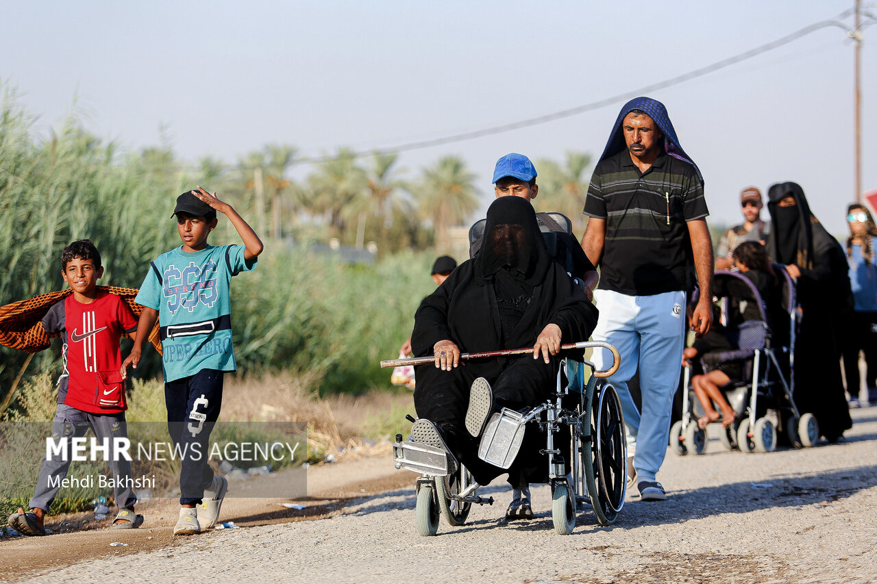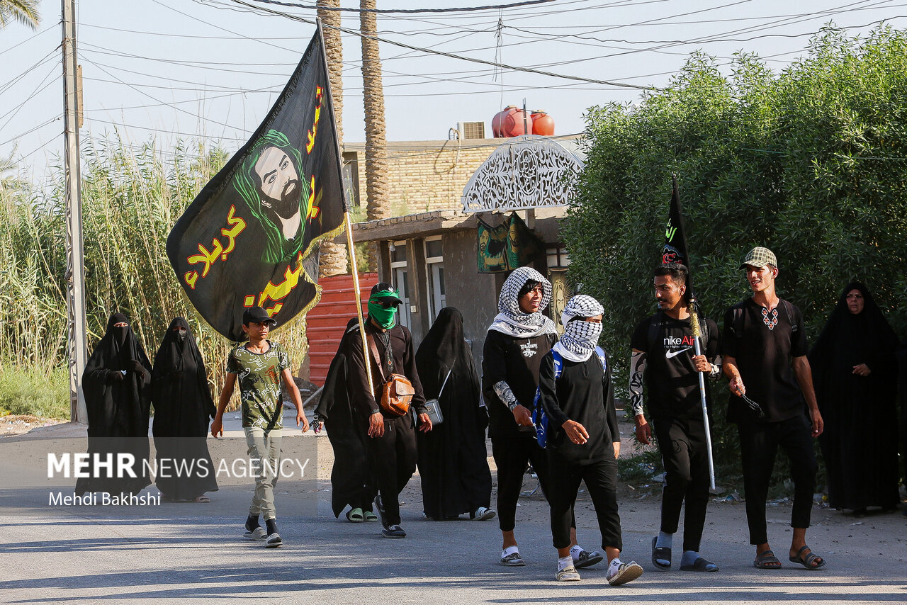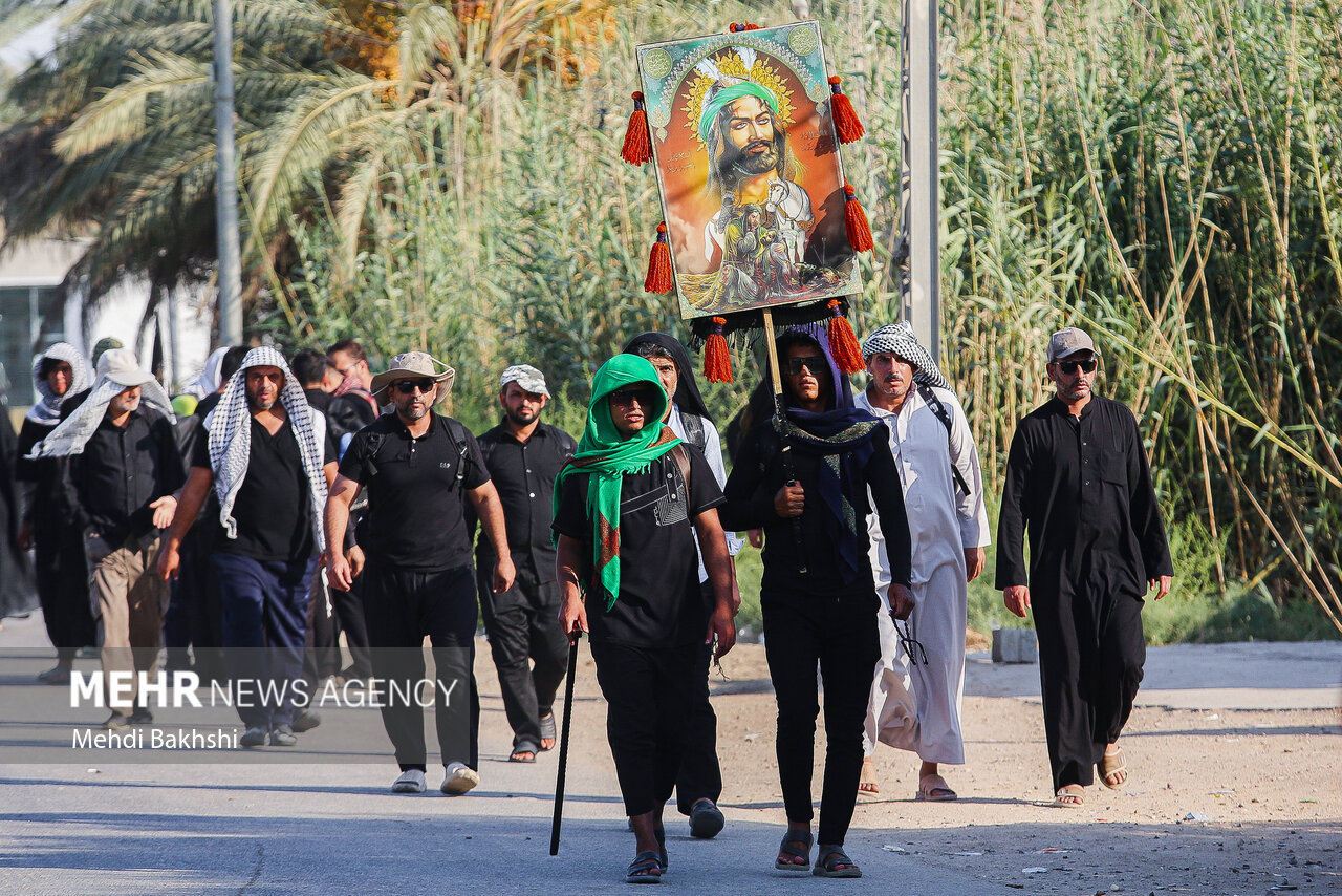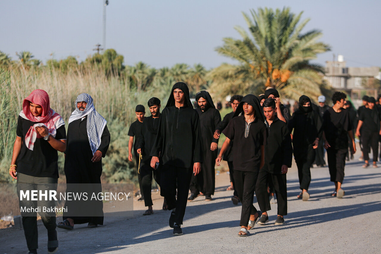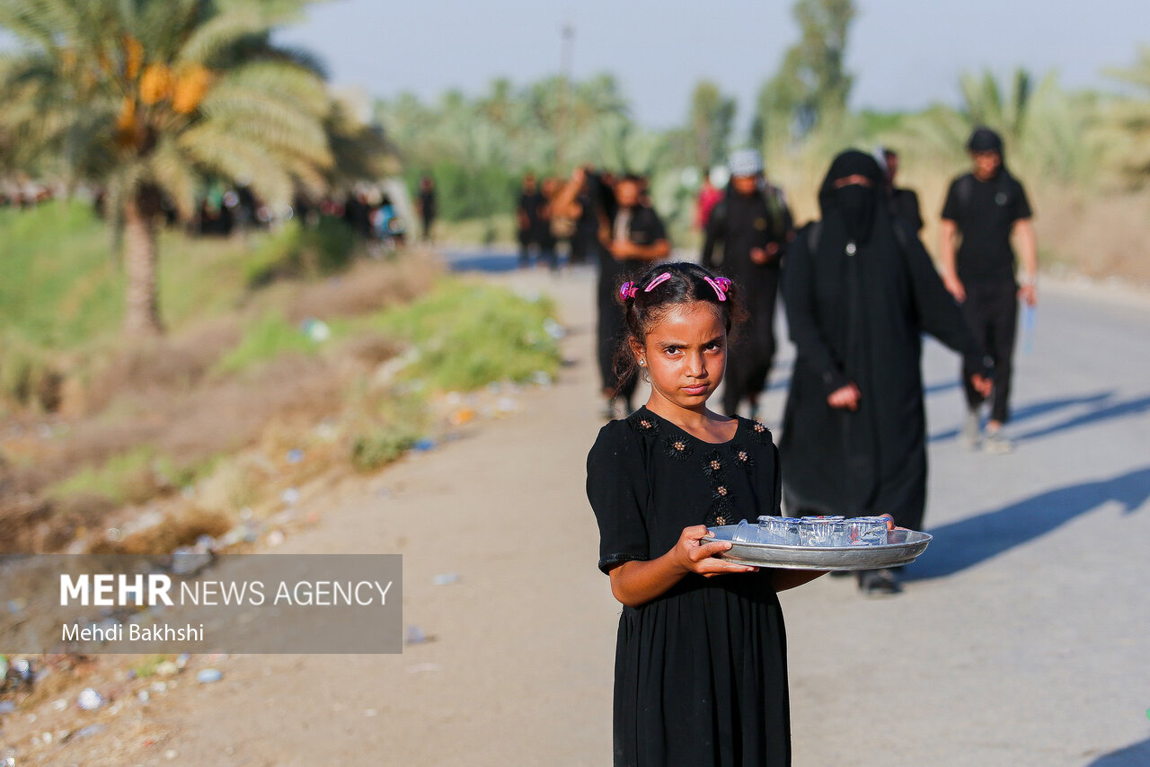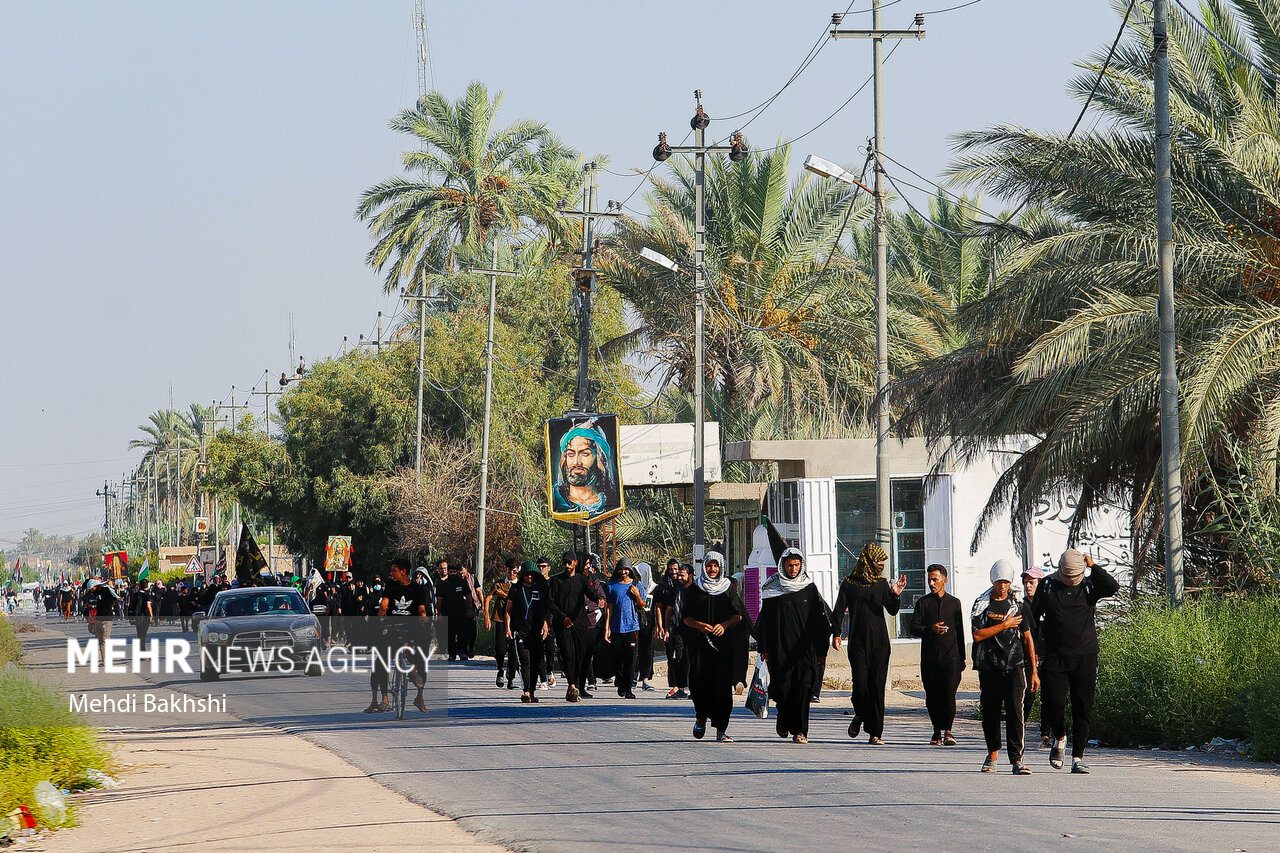 این مسیر از کنار نخلستان عبور می‌کند و اهالی منطقه نیز با برپایی موکب هایی در سراسر این مسیر از زائران پذیرایی می‌کنند.