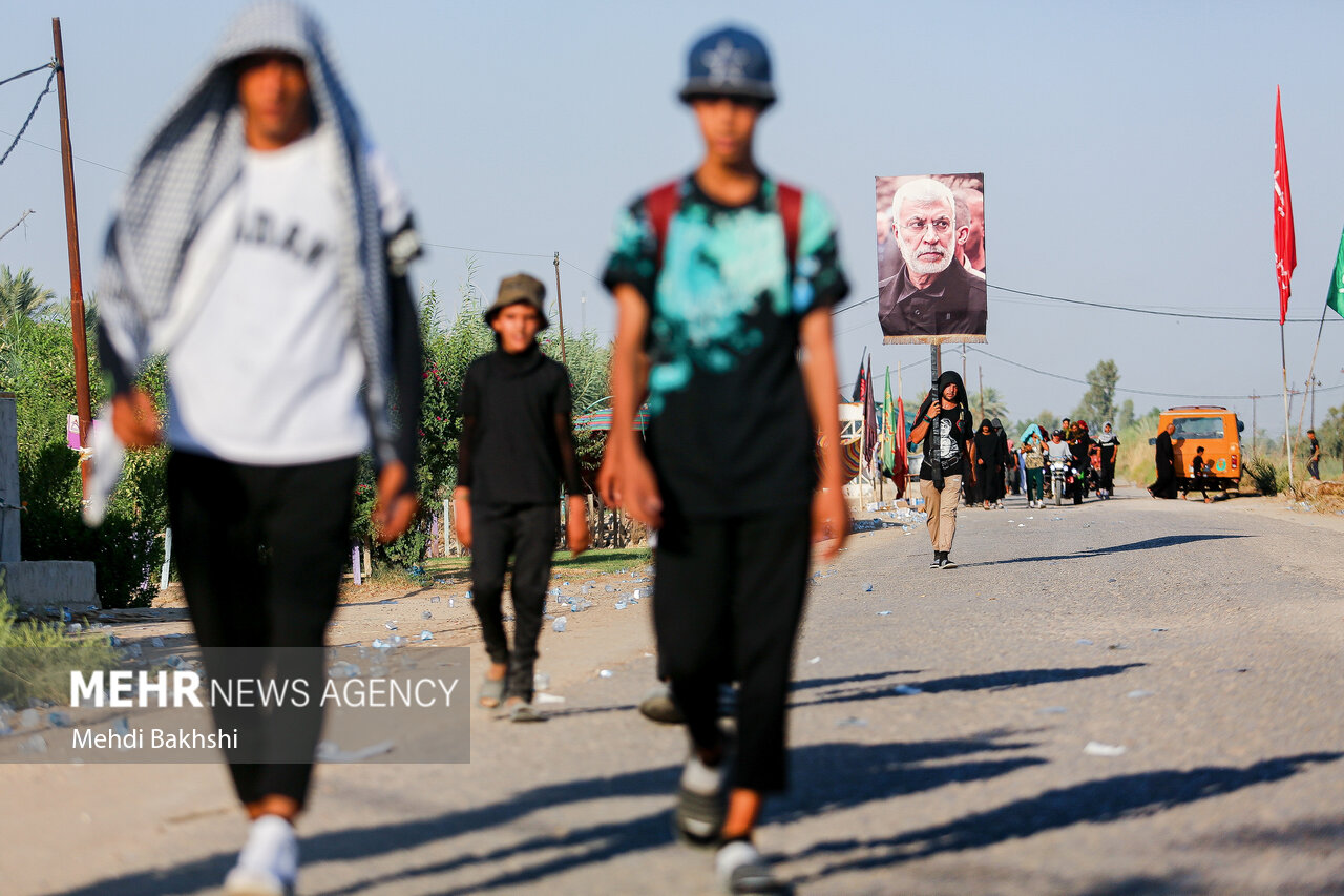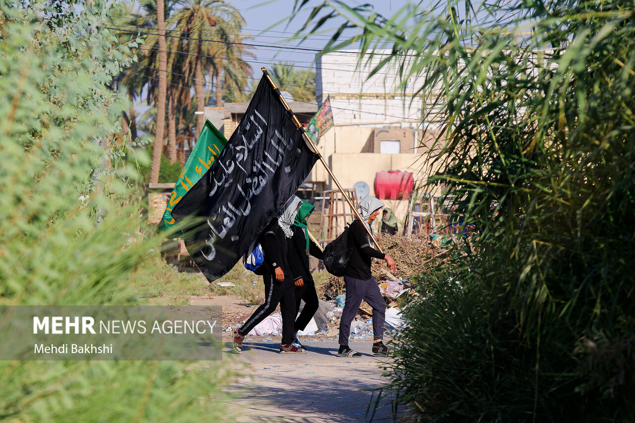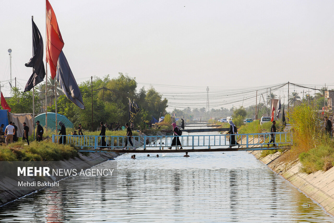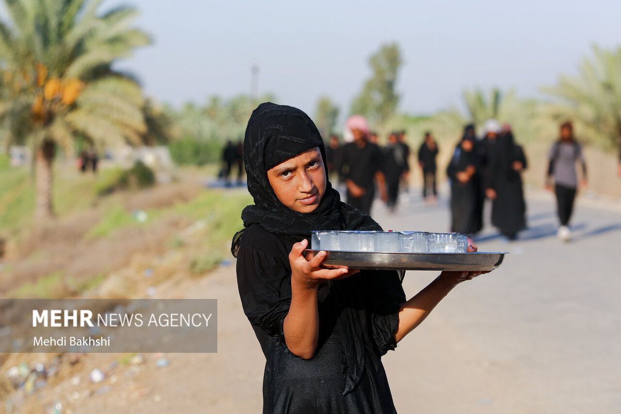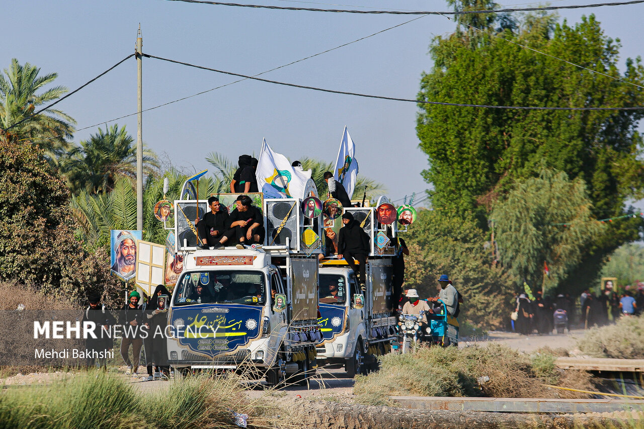 این مسیر از کنار نخلستان عبور می‌کند و اهالی منطقه نیز با برپایی موکب هایی در سراسر این مسیر از زائران پذیرایی می‌کنند.